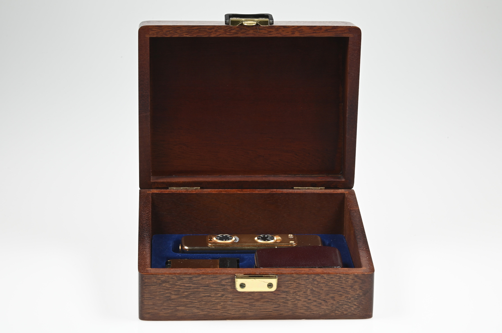 Gelegenheit Minox LX Limited Gold Edition 994/999 + Minox Blitzadapter + Minox Kamera Tasche + Minox Blitzadapter Tasche + Minox Holzbox Zustand A