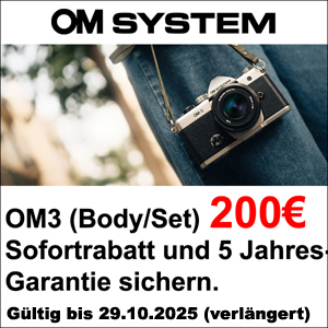 Kaufen Sie im Aktionszeitraum eine OM System OM3 (Gehäuse/Set) und erhalten 200€ Sofortrabatt sowie eine verlängerte 5 Jahres-Garantie.
