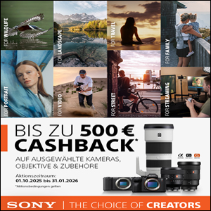 Bis zum 30. Juni 2026 haben Studierende die Möglichkeit, beim Kauf von ausgewählten Kameras, Objektiven und Zubehörteilen von Sony bis zu 500 Euro Cashback zu erhalten (max. 5 Produkte). Die Aktion ist nicht mit anderen Herstelleraktionen kombinierbar.